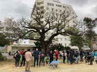 また、教室清掃後にはセンダンの木に肥料をあげるため、
