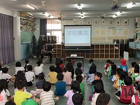 教頭先生の講話を聞いた後、各学級で考えてきた平和宣言を発表し、