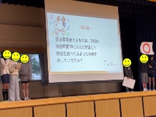 保健委員会さんは風邪やインフルエンザの予防について、視覚的にもわかりやすい工夫を取り入れて発表してくれました。