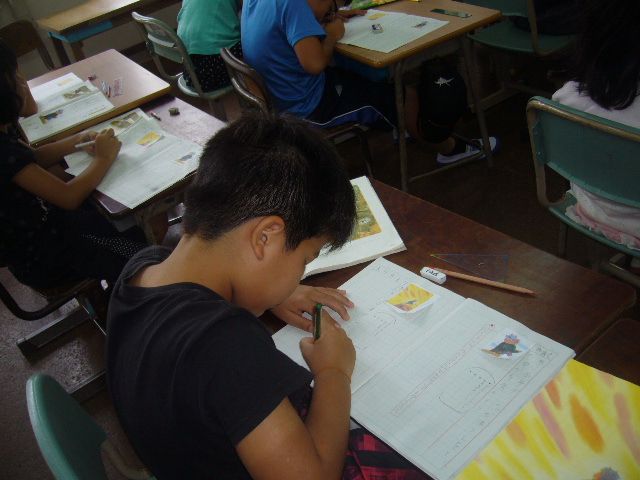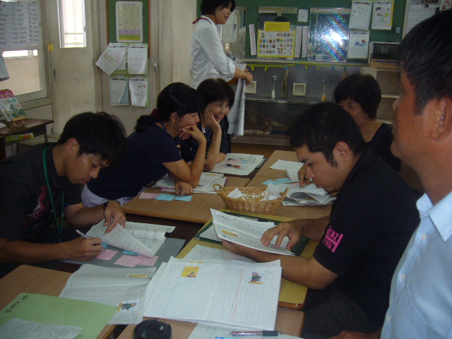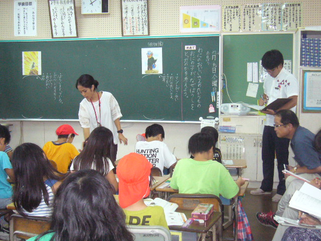 9月9日(金)第2回の授業研究会・全体研を実施しました。(2年2組荷川取学級)授業の中で動作化を取り入れ、主人公の気持ちを考えさせたり、学習進行表の提示、掲示用挿絵やリーフレットの作成、並行読書などを取り入れ、落ち着いた雰囲気で授業は進められていました。「おにの子はなぜぼうしをとったの?」教師の問いかけによく考えていました。2学年の荷川取先生、長嶺先生お疲れ様でした。理論研究から、本時の指導助言まで那覇教育事務所の上里指導主事には大変お世話になりました。ご指導ありがとうございました。