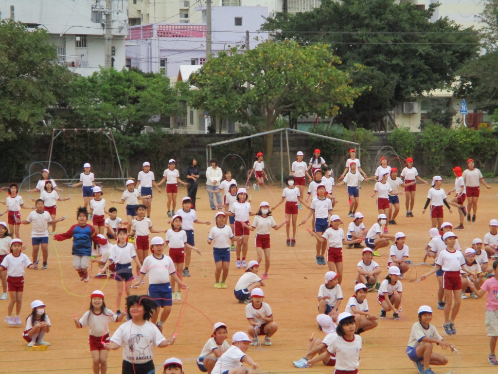 3月2日(木)、体育朝会が行われました。今回は、第2回目の「なわとび大会」です。少し冷たい風が吹き、お天気が心配でしたがこども達は元気いっぱいで取り組んでいました。今回は1年生、2年生も最後まで残った子も多くいました。4月から、授業時間や休み時間など全校で取り組んできた成果がでているようです。どの子もよく頑張りました。
