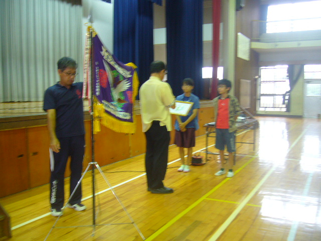 表彰朝会、個人では、那覇市上下水道ポスターコンクール 最優秀賞 5年平敷さん、優秀賞 5年下地さん、児童オリンピック短距離 4位 3年 こはぐらさん 空手準優勝 しばたさんが表彰されました。また、那覇中校区スポーツ大会では優勝、賞状がキャプテンの6年生に手渡されました。みなさん、よく頑張りましたね。