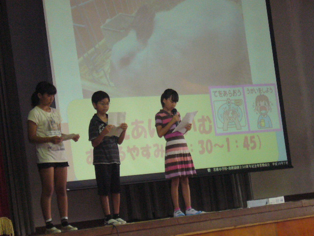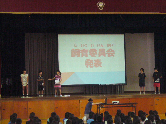 6月16日(木)、児童朝会がありました。担当は飼育委員会です。毎日の飼育委員の活動の様子や新しいウサギの名前募集などはきはきと発表してくれました。 いつもありがとうございます。