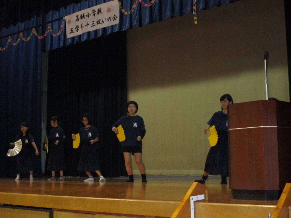 1月29日(日)、若狭公民館において5年生の十三祝いの会が行われました。かぎやで風を幕開けに、子ども達一人一人の成長の様子のスライドショーやお父さんお母さんへの感謝のお手紙の朗読、余興のダンスや歌など盛大に行われました。校長先生からは「命果報どぅ しでぃ果報 (命が長らえる幸せこそが生まれた幸せ)ですよ。とのお話がありました。5年生の皆さん、自分の成長を振り返り、未来へ希望を持ってこれからの人生歩んで下さい。愛情かけて下さるみなさんに感謝の気持ちを忘れないでくださいね。