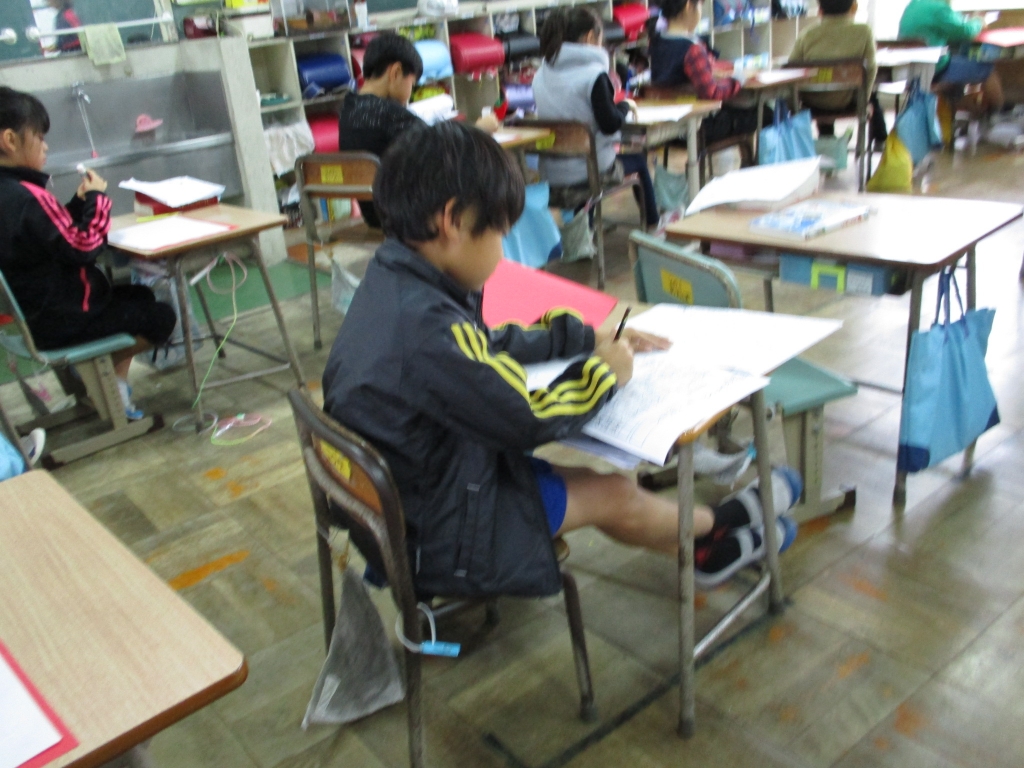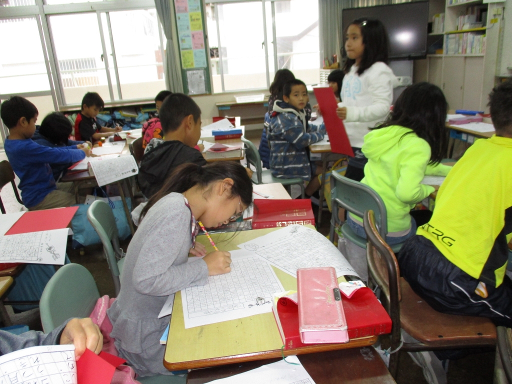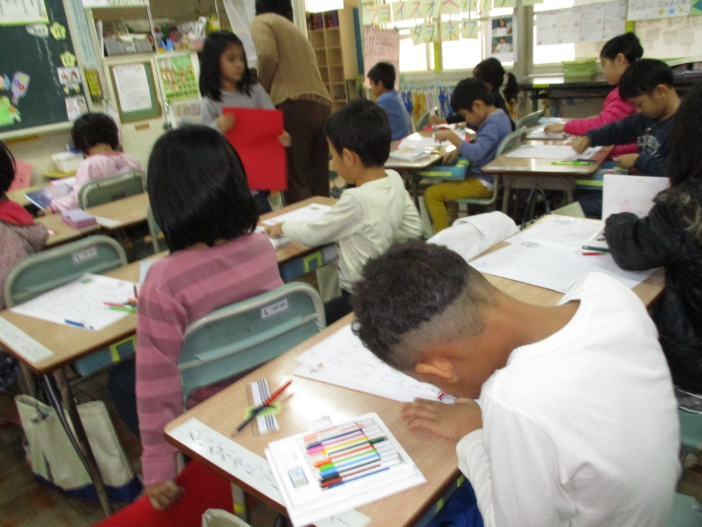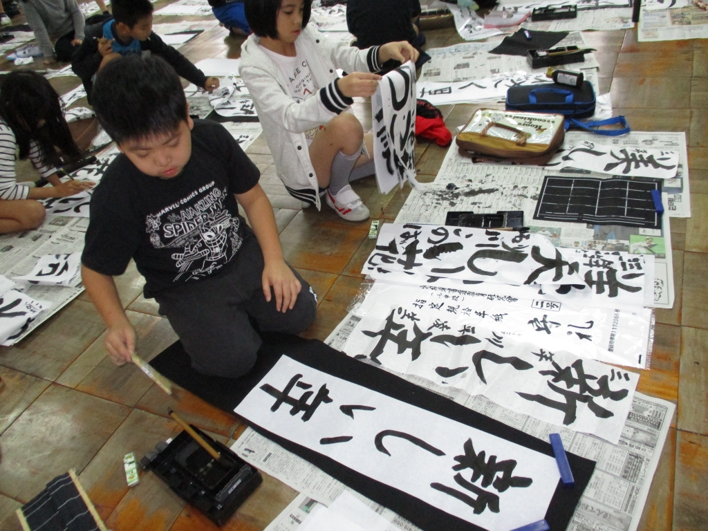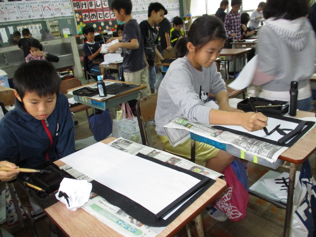 <4年> 一つ一つの筆の運びを丁寧に行います。できあがりに満足!