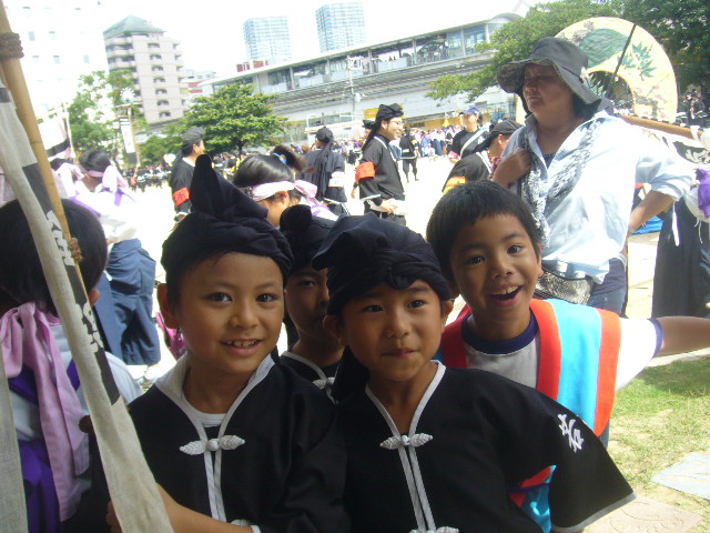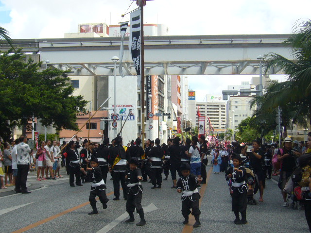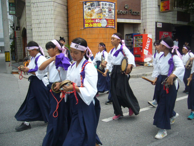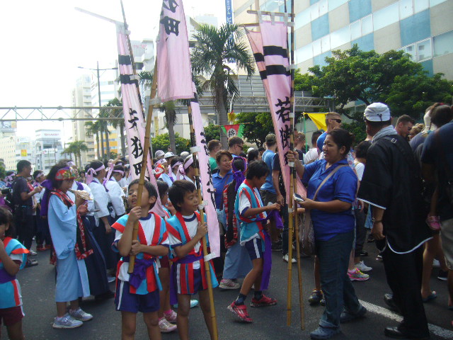 10月9日(日)、那覇大綱挽きまつりに参加しました。旗頭行列では、若狭松山旗頭に続いて小旗隊、チンク隊が太鼓やホラ貝を鳴らしながら、国際通りを堂々と歩きました。午後の大綱挽き本番では「、サーサーサーサー」と大きなかけ声で綱挽きを盛り上げました。西が優勝!おめでとうございます!!暑い中、若狭っ子のみんなよく頑張りました。参加したみな様、本当にお疲れ様でした。
