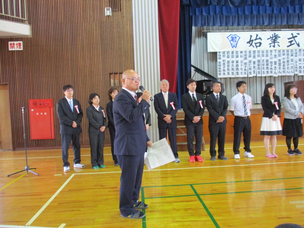 4月9日(月)、平成30年度新任式・始業式が行われました。今年度は、手登根宏校長先生をはじめ、24名の先生が若狭小に赴任されました。手登根校長先生からは、「これから新しいスタートです。今年度頑張って欲しいことは、3つあります。①ジンブンの花 ②ユイマールの花 ③ガンジュウの花 咲かせるように頑張って下さい。あいさつ上手、お話を聞ける子が大好きです。」とお話がありました。また、6年生代表のももかさんから「最高学年として、みんなに優しく、困っている人がいたら助けられる上級生になりたいです。」と挨拶がありました。さすが最高学年6年生、よろしくお願いします!