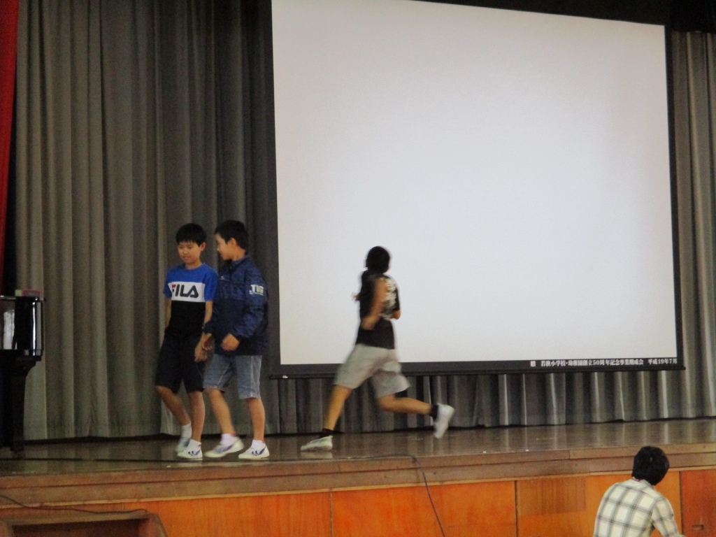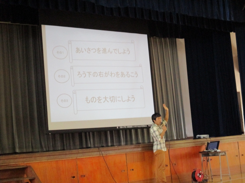 4月19日(水)、お話朝会が行われました。今月の担当は生活委員会です。生徒指導主任の上原敏希先生からは、①目を見て気持ちの良いあいさつをしましょう。②廊下は右側を歩きましょう。ストップ60運動③物を大切にしましょう。記名をする。若狭っ子のきまりしっかり守りましょう。とのお話がありました。また、生活委員会さんのデモンストレーションもあり低学年にもわかりやすいお話でした。