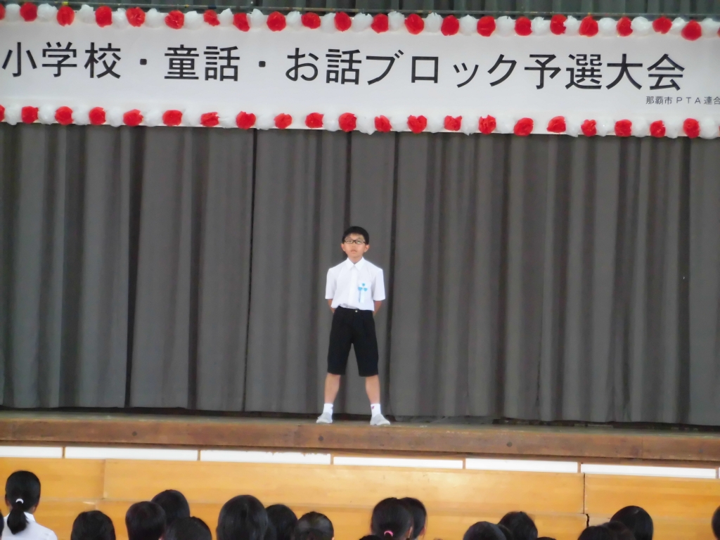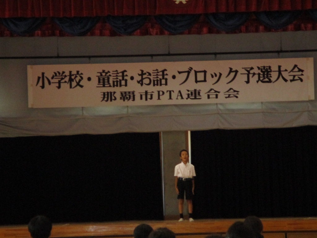 本校からは、低学年の部で3年生のれんさん 安里さん、高学年の部では、6年生の下地さん しまづさんが出場しました。6年生の男子の部でしまづさんが、優秀賞に輝き、那覇市の大会へ出場します。代表のみなさん、とてもよく頑張りました。素晴らしいかったです。